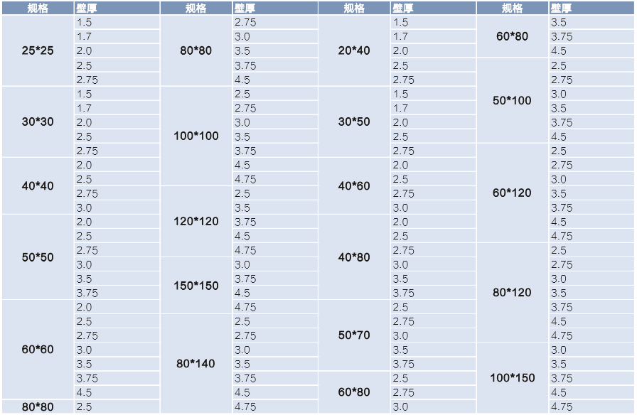 | 方管 | 40*40*2.5 | Q195-Q235 |